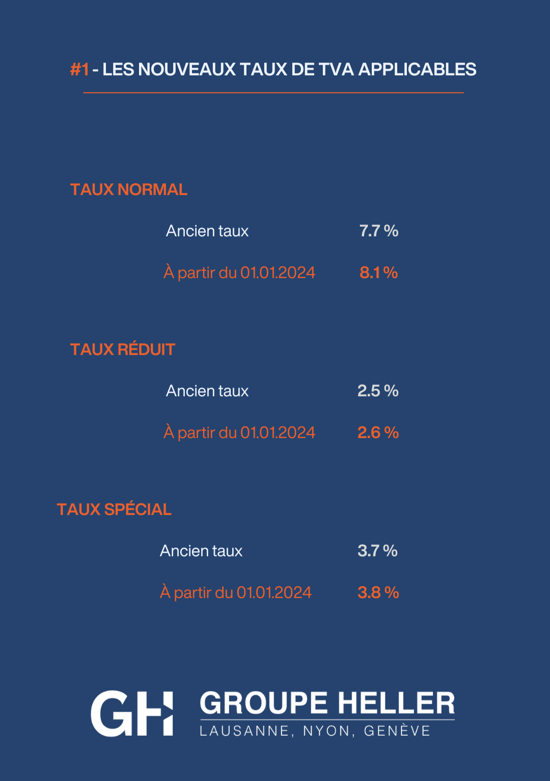 Pour en savoir plus sur le rehaussement des taux de TVA applicables dans les cantons de Genève et le canton de Vaud, nous vous invitons à contacter les équipes et les associés des fiduciaires du Groupe Heller présents à Genève, Nyon et Lausanne. |